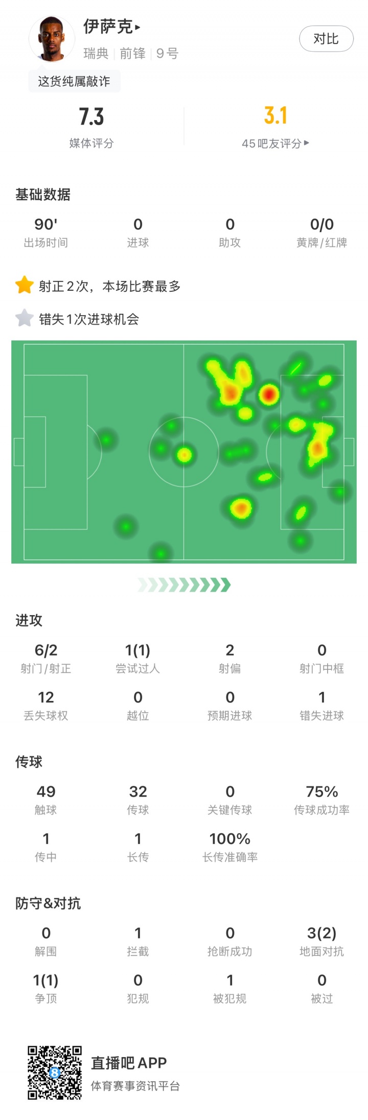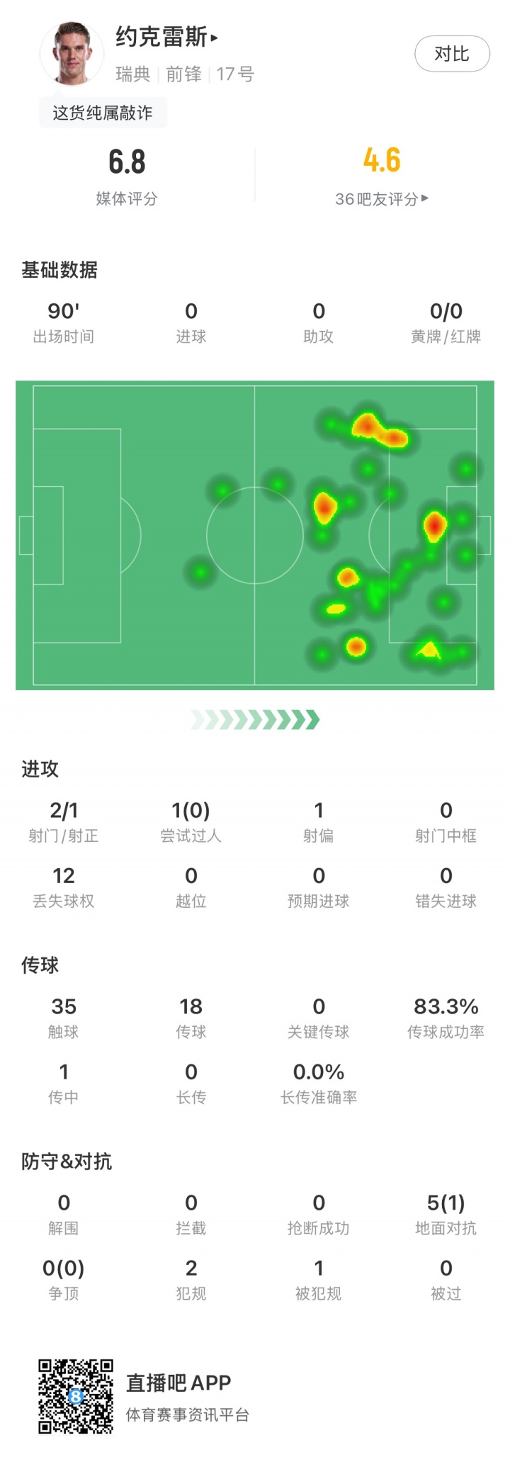 10月14日訊 世預(yù)賽賽場,瑞典0-1不敵科索沃,瑞典無緣直接晉級世界杯。本場約克雷斯、伊薩克均首發(fā)打滿全場,伊薩克全場6射2正0球,1次錯失良機(jī)。約克雷斯數(shù)據(jù)為2射1正0球。