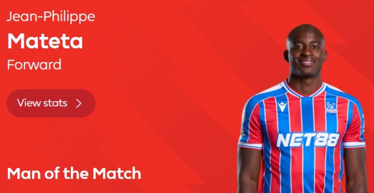本場比賽水晶宮前鋒馬特塔上演帽子戲法,賽后他也當(dāng)選