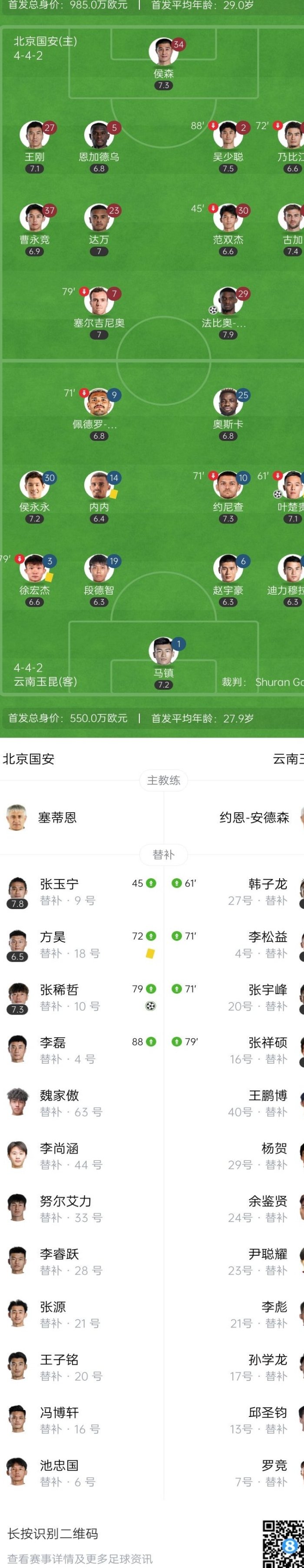 第30分鐘,云南玉昆右路攻勢(shì),約尼查第一下傳中被擋回,隨后人群中將球一捅,葉楚貴點(diǎn)球點(diǎn)附近直接推射破門!云南玉昆客場(chǎng)1-0領(lǐng)先北京國(guó)安↓